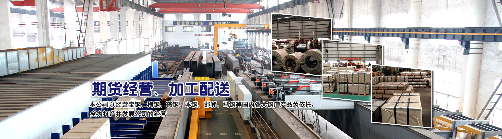本公司以经营宝钢、梅钢、鞍钢、本钢、邯郸、马钢等国内各大钢厂产品为依托,全力打造并发展公司的经营:经营及经营国内外各大钢厂产品,包括:热轧、酸洗、冷轧、热镀锌、电镀锌、耐指纹、矽钢片(电工钢)、彩涂、镀铝锌、汽车钢板 耐侯钢 等等主要系列,为广大用户提供廉价、实惠的钢铁原材料产品。